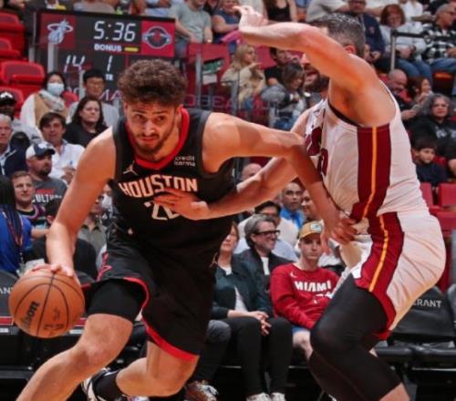 北京时间3月22日,火箭队在自己的主场有惊无险地战胜了强大的迈阿密热火队,收获两连胜。虽然是背靠背比赛,但火箭队仍然战胜了这个强大的对手。火箭队这边仍旧是残阵出战,亚当斯和范弗里特因为受伤赛季报销,而热火队他们的前锋维金斯和小海梅·哈克斯也都因伤缺阵,所以说两边的阵容基本上是半斤八两,但火箭队还是把握住了最后关键时刻的进球,由阿门·汤普森补篮得手,帮助火箭队涉险过关,守住了这场主场胜利。