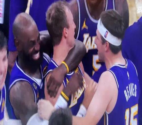 安利中心直接安静如鸡,湖人全队疯了一样冲向肯纳德。老詹像个没见过世面的41岁小孩子,紧紧抱住了肯纳德,全队激情庆祝——这画面,懂的都懂,懂的都懂啊!