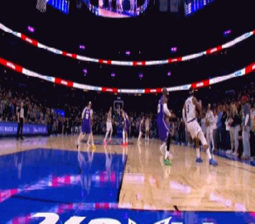 最后2秒,湖人前场发球,老詹直插篮下一下就带走两人,就在这一瞬间,肯纳德从右侧45度角悄咪咪溜到左侧45角,聪明哥心领神会,球长了眼睛一样飞到他的手里。