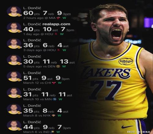 再说说东契奇,这家伙最近简直是球场上的“得分狂魔”!刚刚背靠背怒砍100分,这操作,就像在游戏里开了无限火力模式。最近还带着球队一路狂飙,拿下八连胜,把湖人“送”上了西部前三,自己也顺势冲进了MVP候选人的“豪华阵营”。要说防守,东契奇可能跟前面两位比起来,就像个“小透明”,但要是论进攻,好多球迷都觉得他就是当今球场的“武林盟主”。东契奇赛季场均能轰下32.9分(联盟第一的得分王),还能抓下7.9个篮板,送出8.5次助攻(联盟第三的助攻高手),还能“顺手牵羊”抢断1.6次(联盟第七哟),正负值是+2.6,命中率也有47.7%/37%/77.2%,球队战绩45胜25负,在西部排第三。