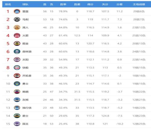 今日比赛后快船、开拓者排名互换,其他西部球队排名不变。