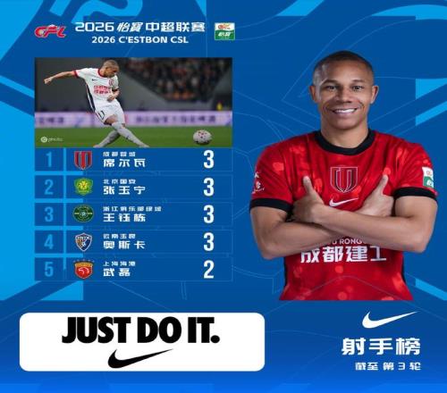 中超方面,成都蓉城射手席尔瓦在刚结束的第3轮川渝德比中,可谓大放异彩,他先是制造点球,由韦世豪主罚命中,接着踢出一脚石破天惊的世界波,洞穿了对手的球门。凭借这个进球,席尔瓦以高效的3个进球,登上射手榜榜首。不过,遗憾的是,他的进球未能帮助球队拿到3分。