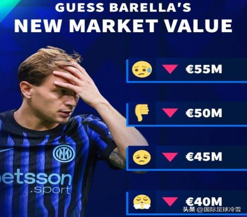 赛前,《转会市场》等身价评估机构就在热炒,巴雷拉的身价连年下滑,下次更新可能还会更低。