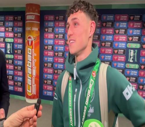 北京时间3月23日,曼城在温布利2-0击败阿森纳成为联赛杯冠军。赛后,曼城中场福登接受了采访。