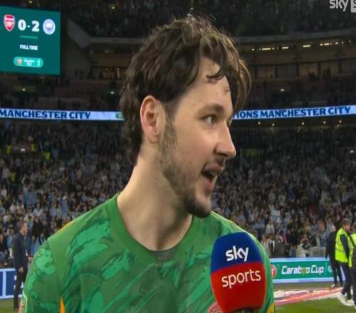 北京时间3月23日,曼城在温布利2-0击败阿森纳成为联赛杯冠军。赛后,曼城门将特拉福德接受了天空体育的采访。