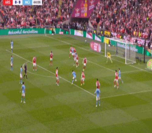 第49分钟,球最后碰到哈弗茨的脚上出了底线,裁判判给阿森纳角球