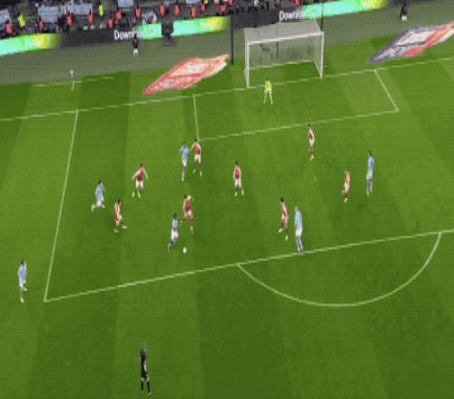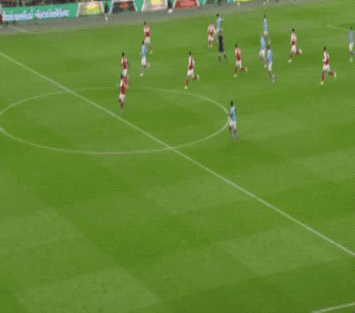 第87分钟,热苏斯头球吊射,皮球越过特拉福德头顶,砸在横梁上。