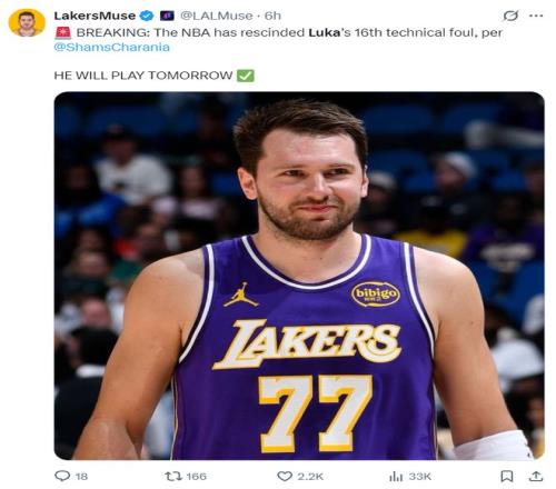湖人13战12胜两点联盟前5!东契奇场均36+8+7取消技犯引名嘴不满