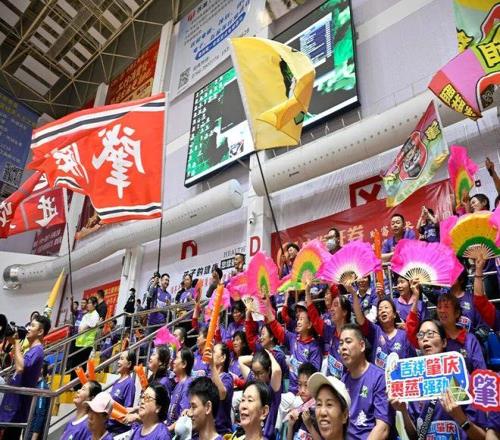 看台上,肇庆球迷擂鼓挥旗,