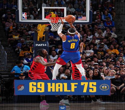 掘金:约基奇22分14板14助2断、穆雷22分2板7助、约翰逊19分2板3助2断、布劳恩15分6板2助、沃特森14分6板3助、布朗13分3板3助、戈登12分3板4助。