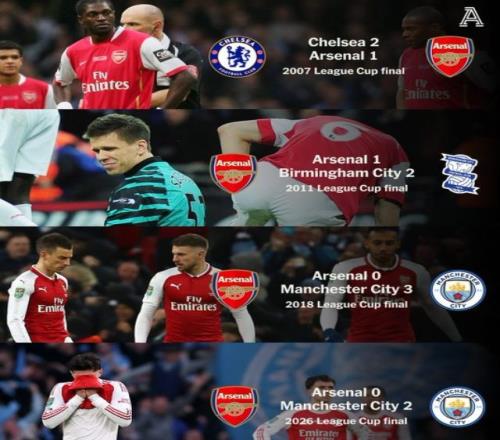 英格兰联赛杯决赛格外激烈,最终还是瓜帅率队夺冠,赛后阿森纳球迷认为杯赛不重要,球队更专注欧冠和联赛争冠,而事实上枪手上一次夺得联赛杯冠军要追溯到1993年,说球队不渴望这座奖杯的确是自欺欺人,只能说本场比赛技不如人,除了主帅博弈方面,球员的表现也很差。数据显示,阿森纳在最近四次联赛杯决赛中全部告负,创造了该赛事历史上最长的连续决赛未夺冠纪录。