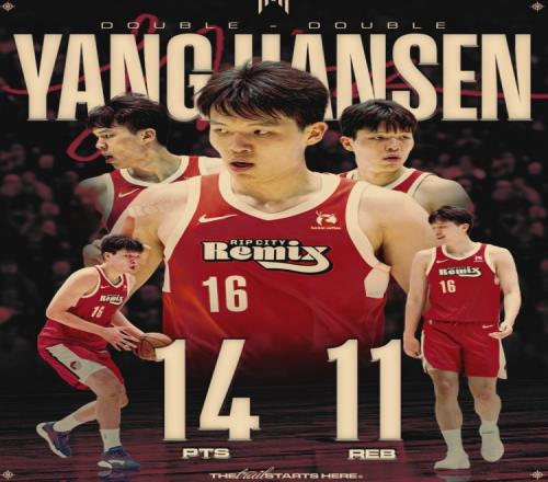 这是杨瀚森背靠背(3月21日得到17分11篮板)拿到两双的数据,今天混音官方为他制作海报庆祝。