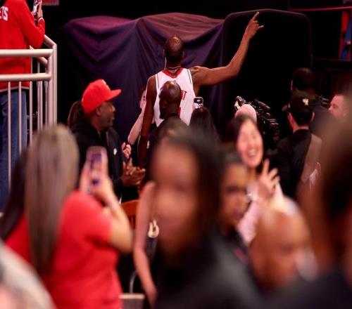 在以1分险胜热火的这场比赛结束之后,杜兰特接受完各种赛后采访回到主队更衣室。主帅乌度卡早就拿着这场比赛的用球在等着他,当杜兰特接过这个意义非凡的篮球时,申京、谢泼德和一众年轻的队友已经迫不及待地把水瓶中的水全部洒向杜兰特。