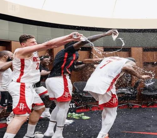 而队友们也用泼水庆祝回应了杜兰特。杜兰特自己都说:“说真的,我以前从来没在更衣室里就开始洗澡,他们给了我许多的爱,这真的很‘甜蜜’。”