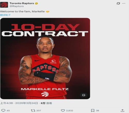 北京时间3月24日,多伦多猛龙官方宣布:球队用一份10天合同,正式签下NBA状元马克尔-富尔茨。富尔茨两周前加入发展联盟,如今终于重返NBA。他在发展联盟场均9.8分2.5板5.3助,三项命中率:43.9%,16.7%,80%。