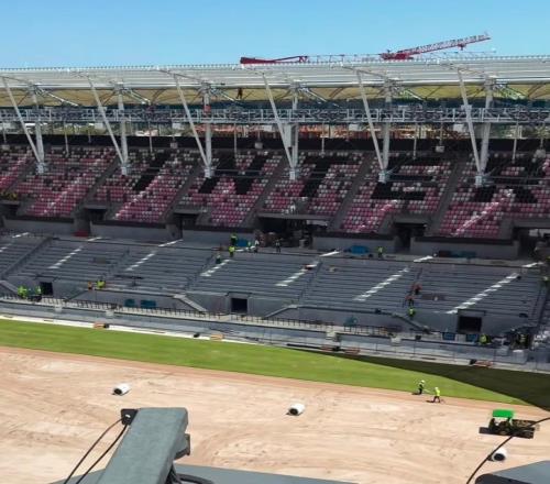 该记者社媒配文写道:“我们已经可以在新球场看到一抹绿色了,迈阿密国际新主场的球场铺设首批照片曝光,实际进度比图片中显示的还要快一些。球场的所有建设工作都必须在4月4日前完成。”