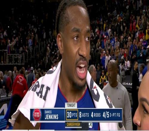 去年11月11日活塞打奇才,最后1秒,活塞落后3分,当时有约一半的球迷已经提前退场了。然后,双向球员詹金斯如天降奇兵,一记绝平3分将比赛拖入加时。