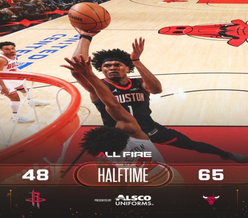 第二节开始后两队你来我往,申京找到手感连进三球,火箭队追至34-48。公牛队暂停后米勒回应三分,塞克斯顿也命中三分,一轮8-0的小高潮让他们领先22分。杜兰特和谢泼德各中三分试图追分,迪林哈姆不甘示弱回敬5分,半场前3分钟时公牛队以63-42领先21分。火箭队暂停后罚中三球止血,琼斯跳投命中,汤普森连拿3分,半场结束时火箭队以48-65落后。