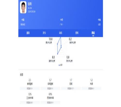 截至第29轮,徐昕场均可得10.8分,抢下8个篮板,完成2次封盖。其中场均篮板高居本土第二位,场均封盖高居本土第一位,该数据表现完全不输很多拿顶薪合同的中锋。