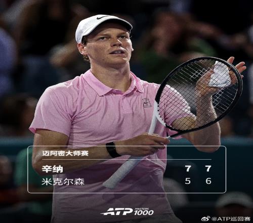 体育播报03月25日宣 ATP1000迈阿密大师赛第四轮,2号种子辛纳以7-5、7-6(4)击败米克尔森,成功晋级八强。