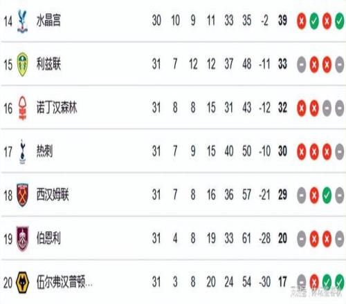 本赛季,英超老牌劲旅托特纳姆热刺队的表现非常糟糕,联赛31轮过后,他们仅取得了7胜9平15负的战绩,目前排名积分榜的倒数第四位,距离降级区仅有1分之差,而且他们接下来的赛程也并不轻松。