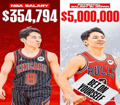 对比参考: 前NBA球员渡边雄太目前效力于日本B联赛的千叶喷气机队,税后收入预计能达到500万美元。据统计,这相当于在NBA签下了一份税前年薪1200万美元的合同。