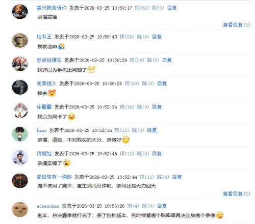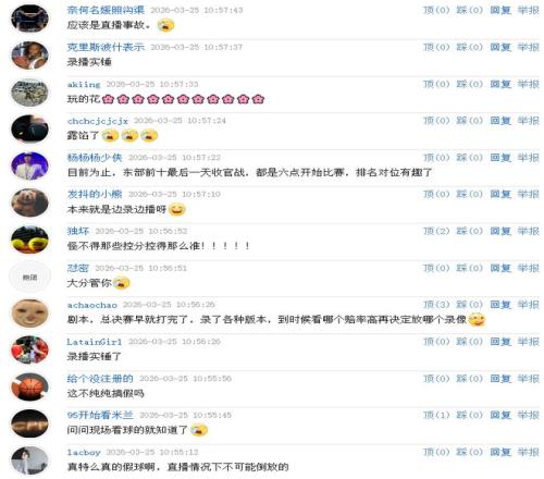 不少球迷说:录播实锤?这不纯纯的搞假球吗?一边录一边播啊?露馅了!直播事故啊!真的打假球吗?直播情况下不可能倒放的!录播实锤怪不得控分这么准!