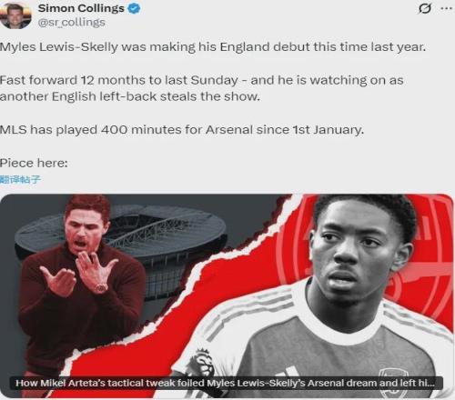 但本赛季,斯凯利的出场机会锐减,自2026年以来,他仅仅出战了400分钟的比赛,而阿森纳甚至无法保证斯凯利在对南安普顿的足总杯比赛中获得机会,因为因卡皮耶和卡拉菲奥里都需要比赛。