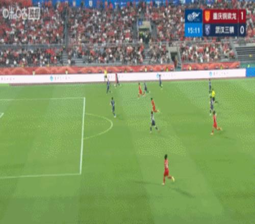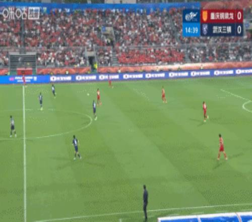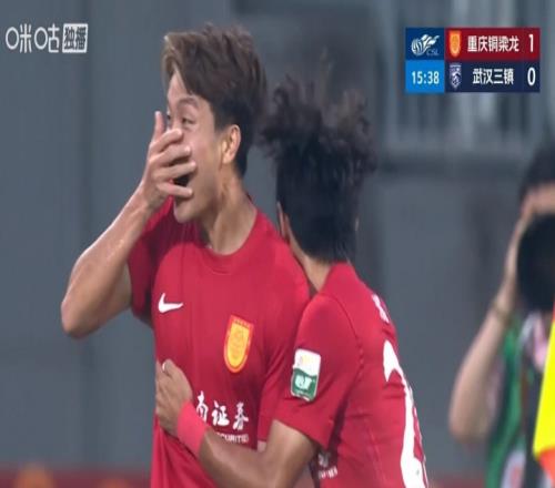 体育播报04月11日宣 中超第5轮,重庆铜梁龙vs武汉三镇,第14分钟,张志雄禁区右路插上接队友斜传小角度打门,方镜淇接球脱手,陈纯新跟进补射破门,重庆铜梁龙1-0领先武汉三镇。