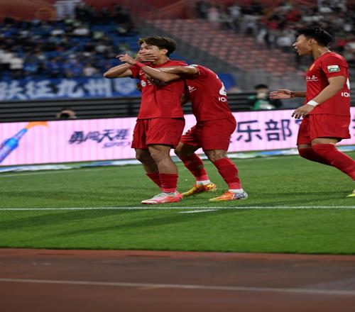 进球后的陈纯新做出了用手捂嘴的庆祝动作。