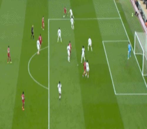 第51分钟,萨拉赫精准直塞,弗林蓬插上传中,加克波门前绝佳机会,处理球过于拖沓被化解。