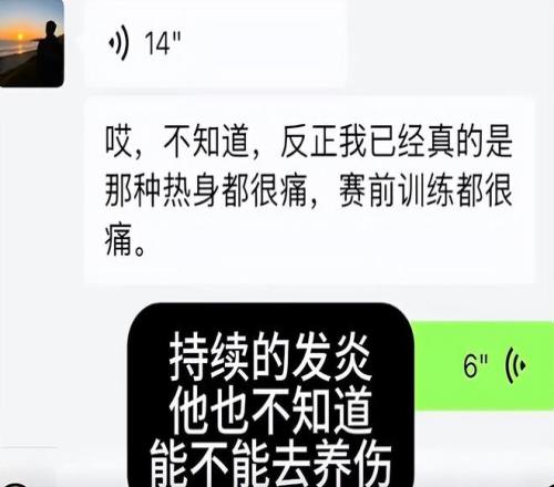 甚至根据博主“Just Fade Academy”晒出了截图,胡明轩在聊天的时候明确表示:腿太疼了,走一步都疼。那种热身都疼,赛前训练都很疼。这样的话语非常明确了,只要走路,他就可以明显感受到疼痛感。即便是这样,胡明轩还是坚持比赛。其实如果可以的话,完全可以让胡明轩休息一下。但广东的目标是前四,再加上两个外援还受伤了,导致胡明轩基本上没有什么恢复的时间。