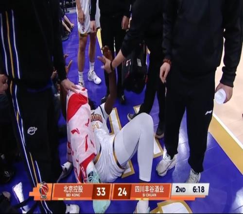 看起来很痛苦!卡迪姆赛落地踩到于枭永崴脚受伤被担架车抬走