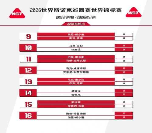 斯诺克世锦赛首轮签表↓