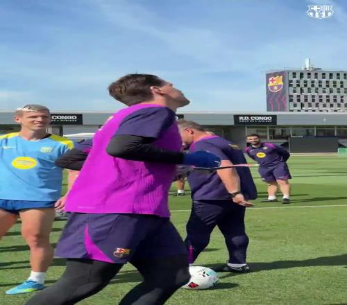 巴萨门将什琴斯尼迎来36岁生日,今日训练之前,队友们列成两排,以拍打仪式为他庆生。