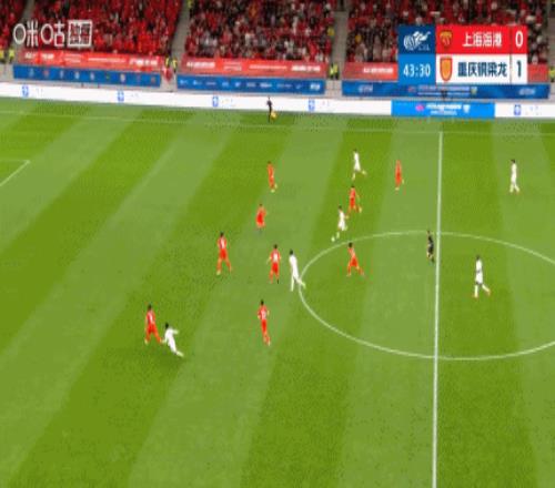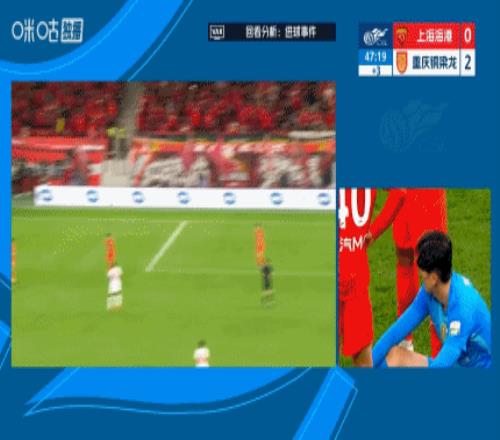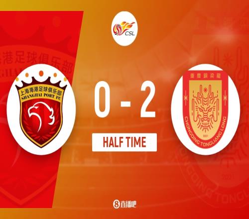 上半场伤停补时3分钟,半场结束,上海海港暂0-2重庆铜梁龙。