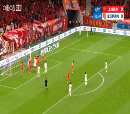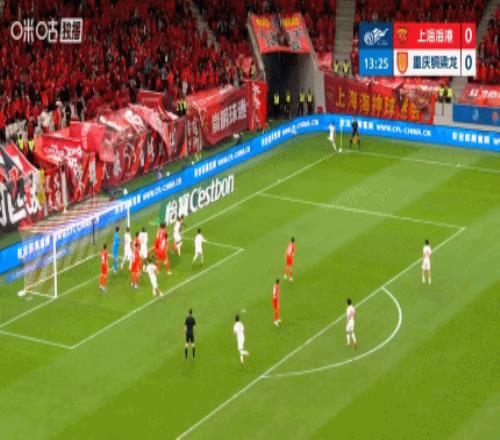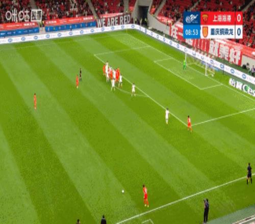 第9分钟,上海海港前场右侧任意球机会,球罚向禁区,中路安永佳头球攻门顶偏了。↓