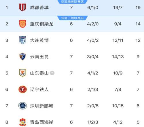 北京时间4月21日,中超第7轮比赛打响,共有5场比赛。在本轮比赛之前,蓉城、铜梁龙排名积分榜前2位,津门虎垫底,国安5轮不胜,在中超几支强队纷纷被扣分的情况下,蓉城的夺冠希望很大。在今晚的比赛中,随着海港1-2铜梁龙,泰山+蓉城皆2-1赢球,中超最新积分:3队争冠。