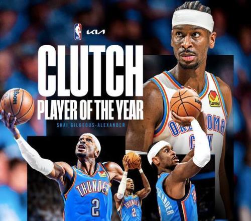 NBA官方宣布,雷霆球星谢伊·吉尔杰斯-亚历山大当选年度最佳关键球员,荣膺杰里·韦斯特奖。亚历山大在关键时刻(最后5分钟分差5分或5分以内和加时赛)场均砍下6.5分,总得分是175分,均排名联盟第一,关键时刻投篮命中率是51.5%。亚历山大为雷霆出战68场常规赛,场均拿到31.1分4.3篮板6.6助攻1.4抢断,同时也是MVP最大热门。