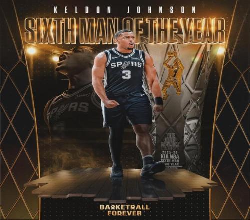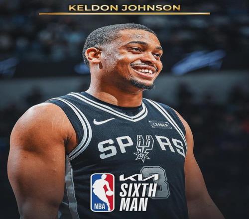 北京时间4月23日上午,NBA官方宣布,马刺球员凯尔登-约翰逊当选本赛季常规赛最佳第六人。凯尔登-约翰逊拿到63张第一选票,28张第二选票和5张第三选票,总得分404分高居第一。热火球员哈克斯第二,掘金球员小哈达威第三。