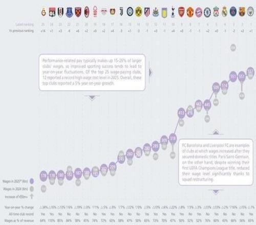 2025年球队薪资支出:曼城5.57亿欧第一,巴萨第二皇马第四