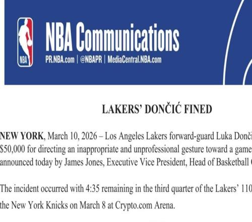 官方:东契奇因在对尼克斯时对裁判做数钱手势被罚款5万美元