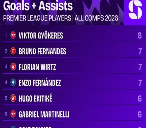 哲凯2026年各项赛事已直接参与8球,同期英超球员中最多