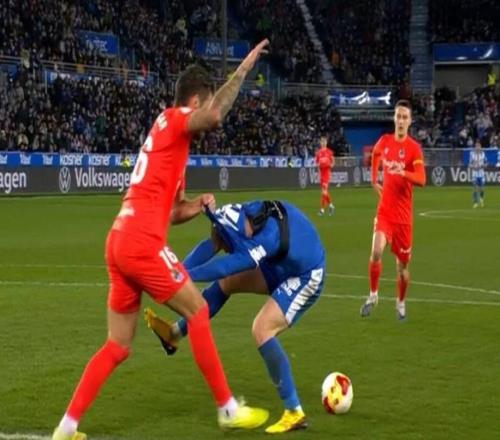 抽象点球,卡莱塔禁区内扒托尼球衣并将球衣罩托尼头上被判点