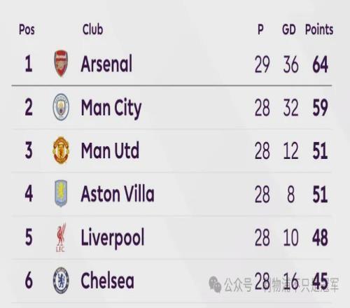 随着曼城22+切尔西41维拉!英超最新积分榜阿森纳胜,曼联败了