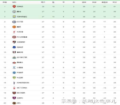 英超最新积分榜:阿森纳笑傲德比5分领跑,利物浦读秒绝杀仍居第6