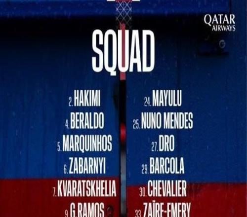 巴黎战切尔西大名单:登贝莱、KK领衔,若昂内维斯回归