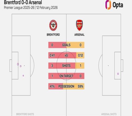 仅4次,小蜜蜂vs阿森纳为本赛季英超射门次数第二少的上半场