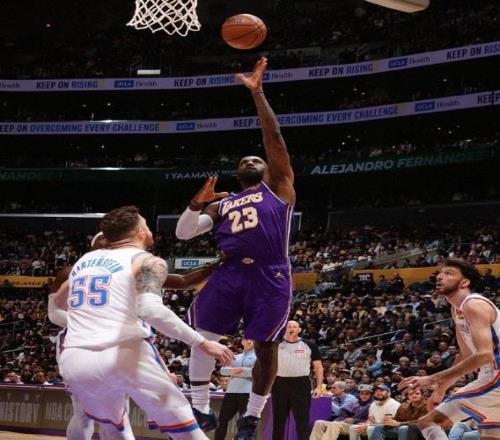 雷霆双杀湖人,詹姆斯空砍3大历史纪录,卡鲁索爆发,杰伦威23分