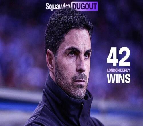 阿尔特塔英超伦敦德比取胜42场,追平穆里尼奥仅次于温格